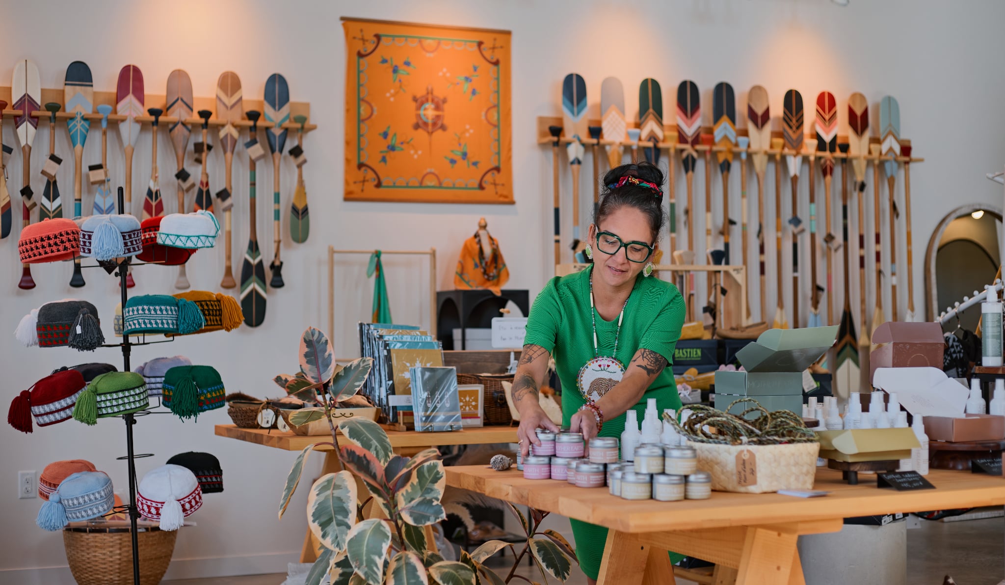 The boutique features decorative items, jewelry, textiles and clothing, wellness and self-care products, local flavours, as well as pieces rooted in art and culture.