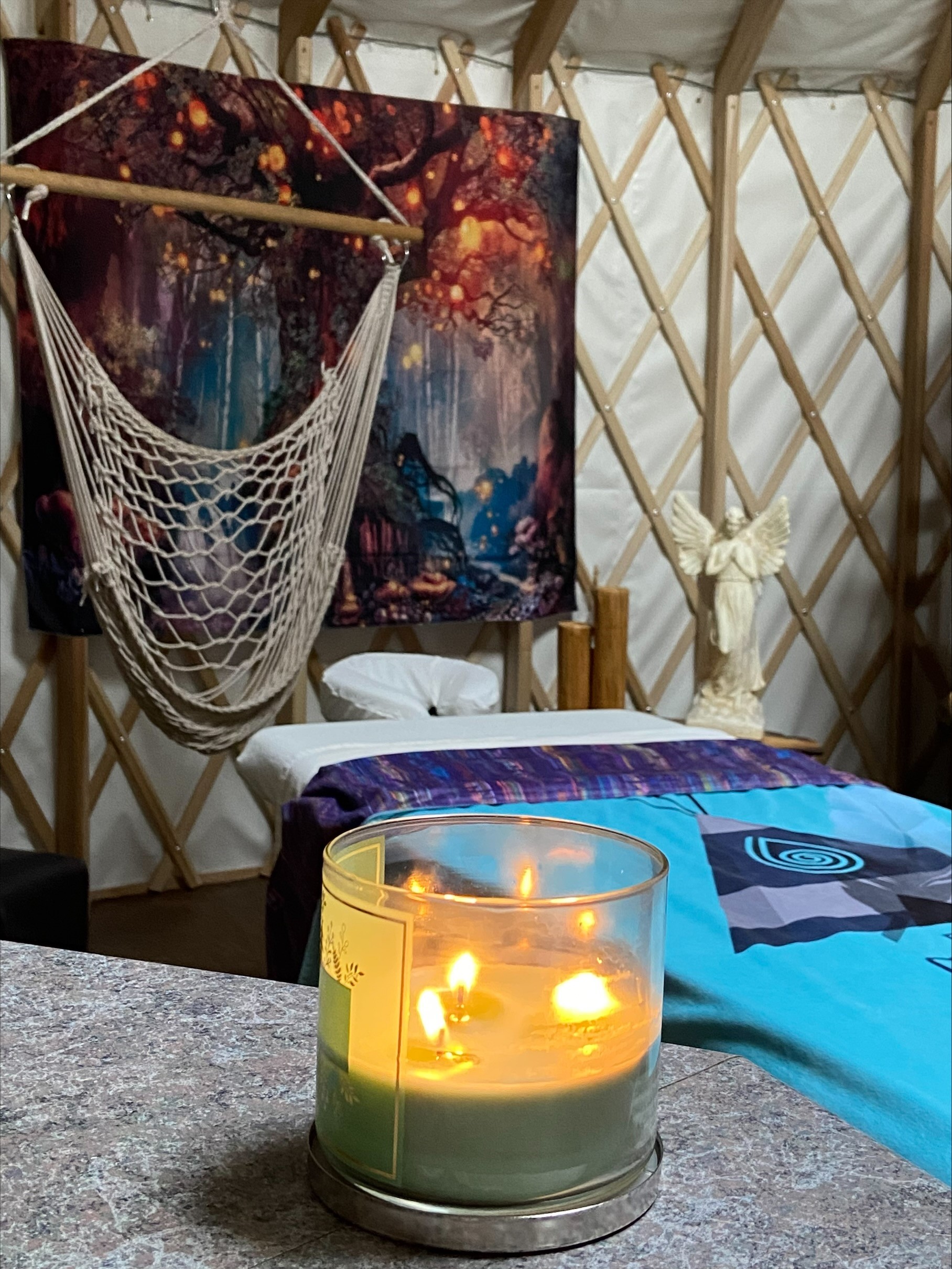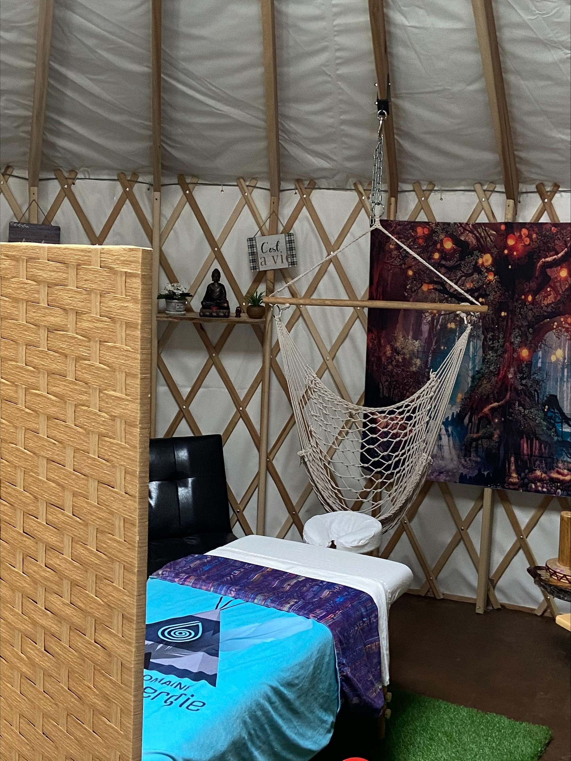 Marie-Claude has created magical places in nature to rediscover herself through her Huron-Wendat roots and cultural heritage. She makes this enchanting domain and her personal experience available to those who feel challenged by what she offers. She offers accommodation in yurts, tipis and prospectors. An area of healing, self-awareness, global health, physical and emotional well-being. As a massage therapist, physiotherapist and energy practitioner, Marie-Claude offers treatments and brings us into her world of well-being and positivism. She works with the energies of the forest and the silence of nature, which soothe and encourage a return to the self. She offers her customers the opportunity to follow the path that led her to an opening of consciousness. The field covers several categories: individuals, schools, businesses, and groups on retreat.